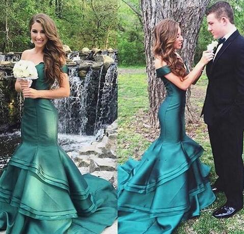 Stunning Mermaid Evening Dresses Tiers Fitted Sexy Off Shoulder Satin Formal Party Prom Dresses Pageant Gowns Robe De Soiree