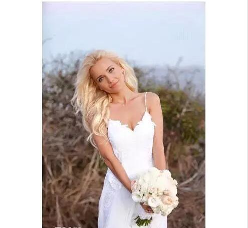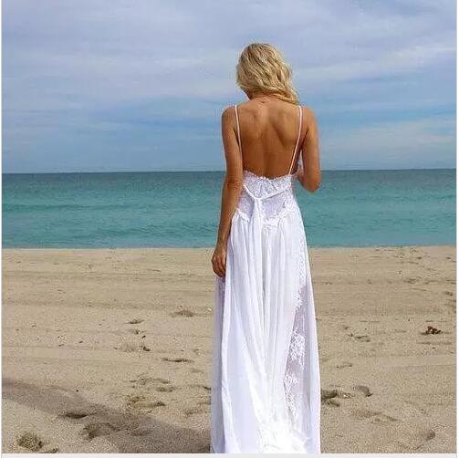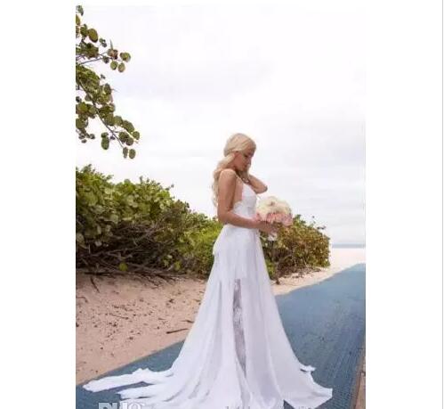 2019 Bohemia Sheath Summer Beach Wedding Dresses Spaghetti Straps Lace Chiffon Split Backless Wedding Bridal Gowns