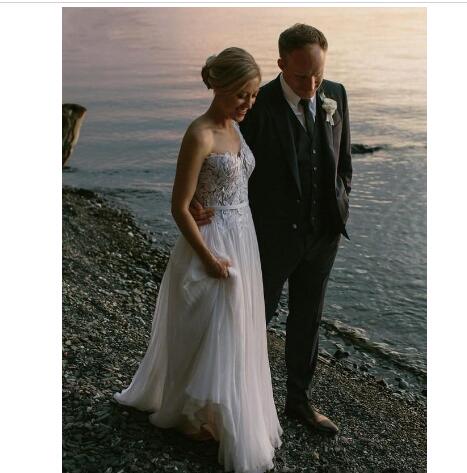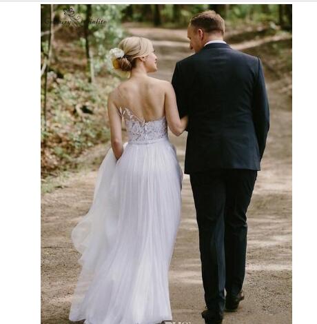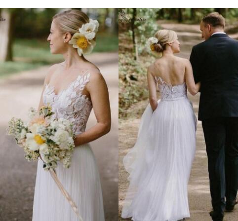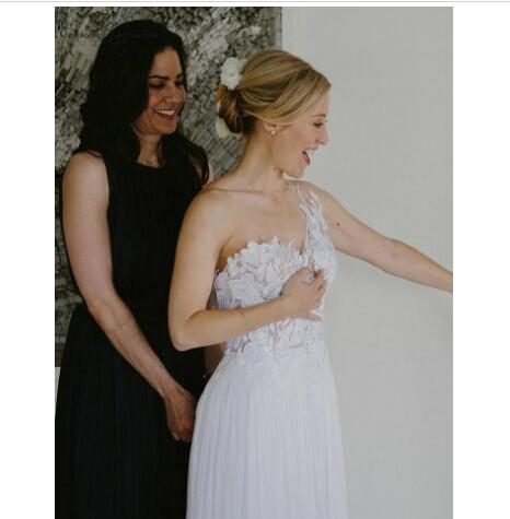 Lace Appliqued Tullle A-line Bohemian Wedding Dresses Elegant One Shoulder Open Back Plus Size Beach Boho Bridal Gown