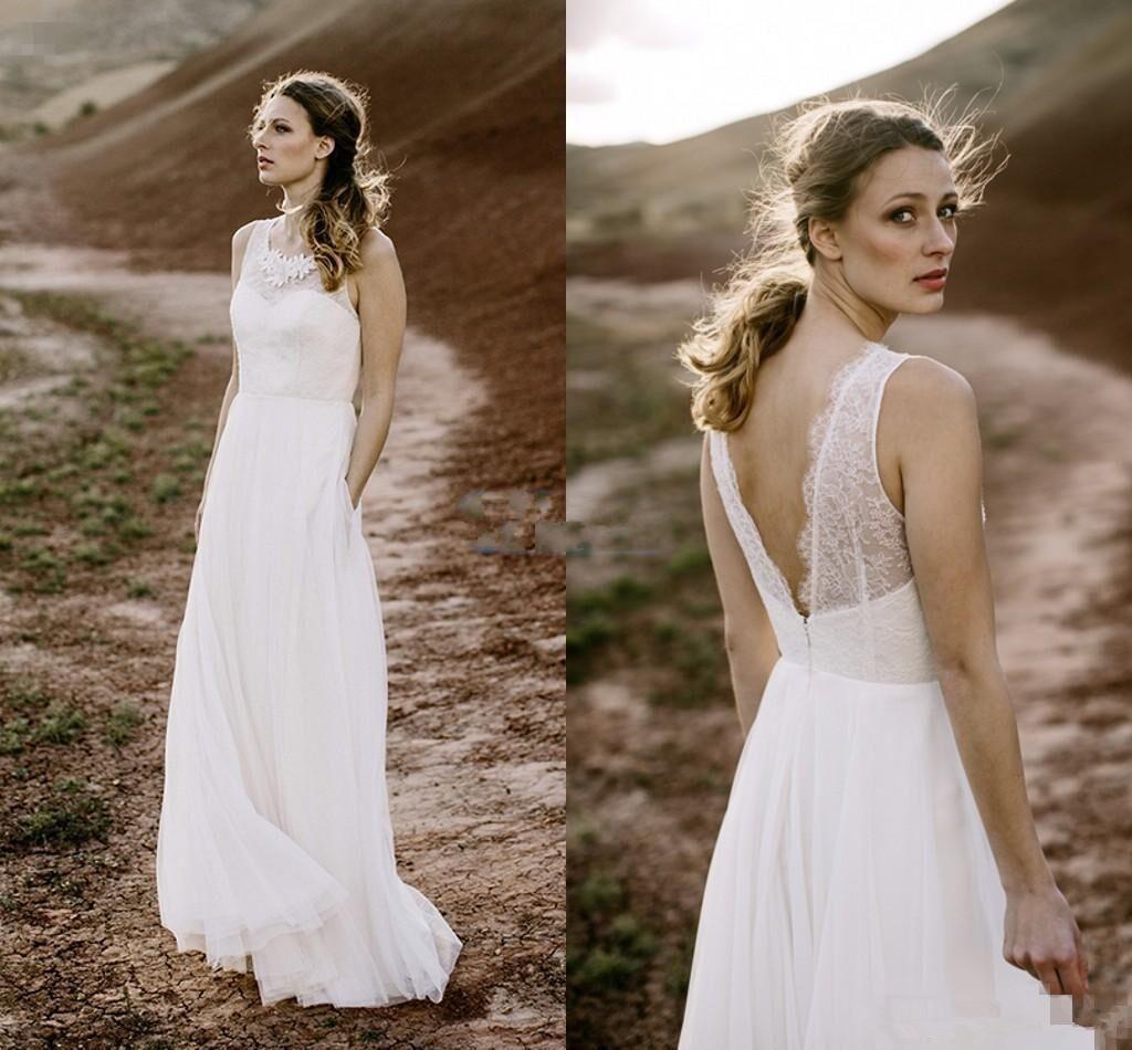 Vintage Soft Lace Beach Wedding Dress Ivory Tulle Bridal Gowns With Pockets 2019