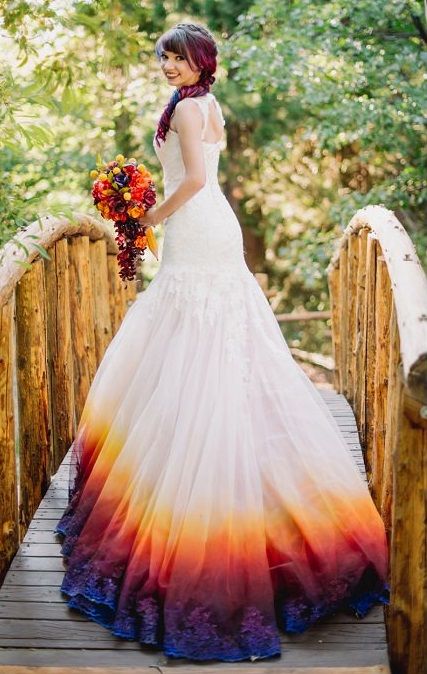 Dye Colorful Wedding Dress, Long Wedding Dresses, Satin Wedding Gown Bridal Dress