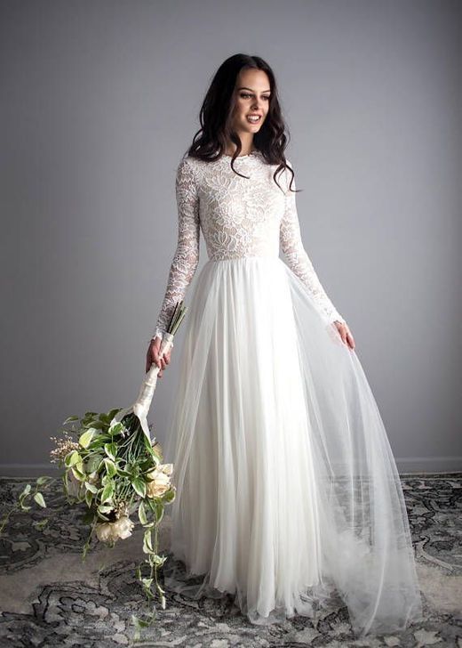 Stunning Long Sleeve Wedding Dresses, Lace Bodice Chiffon Wedding Dress, Bridal Dress Wedding Gown