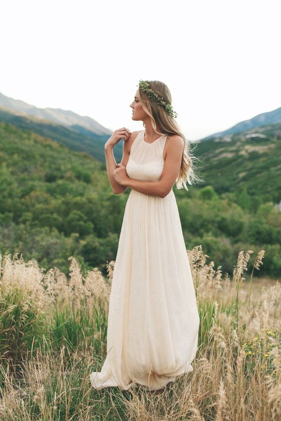 Simple Wedding Dress, Boho Wedding Dresses, Chiffon Long Wedding Gown Bridal Dress