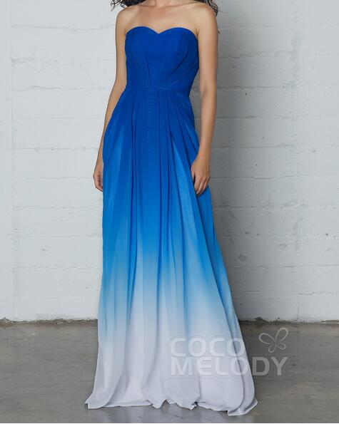 Charming Sweetheart Natural Floor Length Ombre Chiffon Sleeveless Dress with Pleating Prom Party Dress