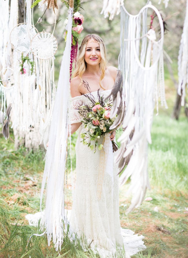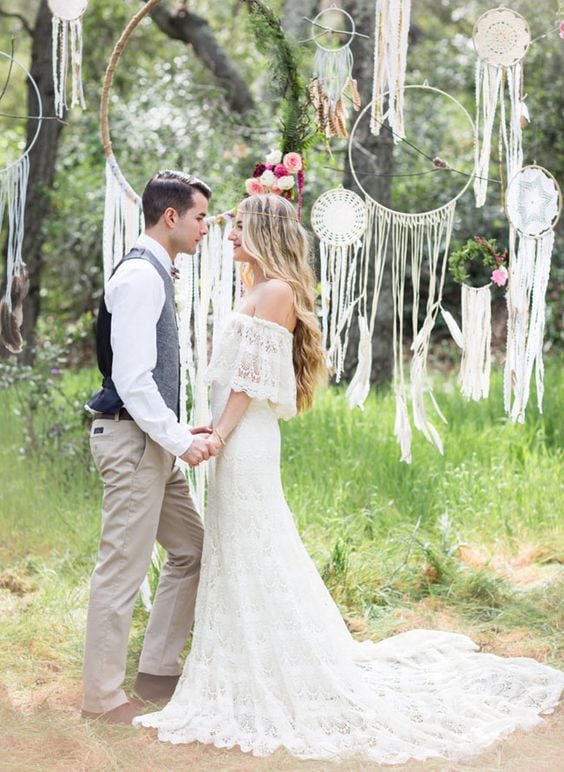 Dreamy Bohemian Wedding Dress, Lace Boho Wedding Dress, Strapless Wedding Dresses Bridal Dress, Elegant Wedding Gown Bridal Gown