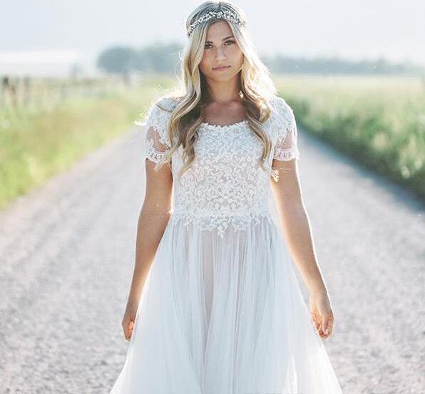 Modest Beach Boho Wedding Dresses Short Sleeves Plus Size Bridal Gowns Bohemia Wedding Gowns vestido de novia