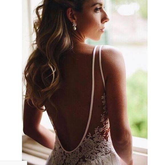 Illusion V-neck Beach Wedding Dresses Country Garden Dresses For Wedding Sleeveless Sexy Backless Appliqued Long Western Bridal Gowns