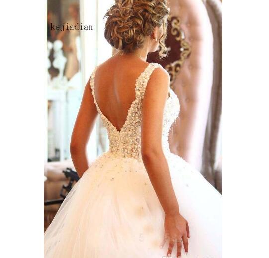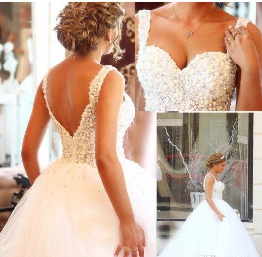 Luxury Pearls Beaded Ball Gown Wedding Dresses Bridal Gown Vintage wedding Gown Custom Vestido De Noiva