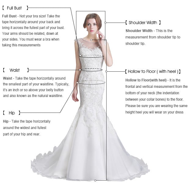 If you need a custom made dress, please measure youself according to the picture guider and send us the following important measurements: