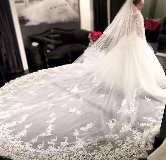 Gorgeous Sheer Ball Gown Wedding Dresses Puffy Lace Appliques White Long Sleeve Arab Wedding Gowns