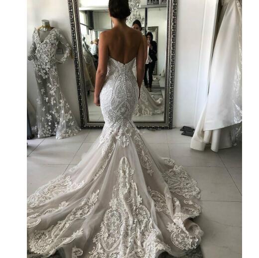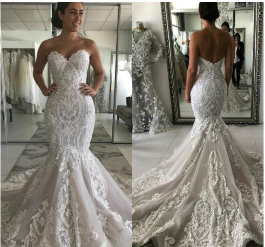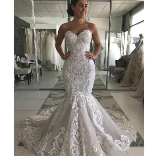 New Luxury South Africa Mermaid Wedding Dresses Sweetheart Lace Appliques Beaded Sleeveless Sweep Train Plus Size Formal Bridal Gowns
