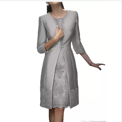 Vintage Mother Of The Bride Dresses Long Jacket Knee Length Mother Evening Gowns Appliques Lace Wedding Guest Dress Custom Made