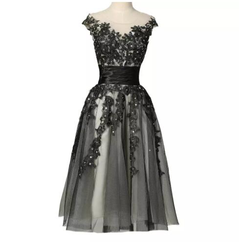 New Black Mother of the Bride Dresses Cap Sleeve Jewel Neck Beaded Lace Tulle Short A-Line Formal Gowns Zipper Back Custom