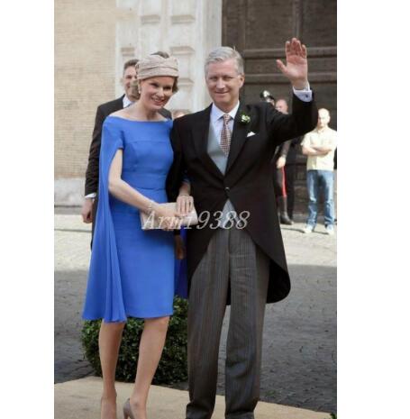 Elegant Royal Blue Mother Of The Bride Dresses Knee Length Mother's Dresses With Wrap Formal Weding Party Dress Celebrity Gowns Plus Size