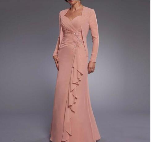 Orange Chiffon Mother's Evening/Prom Dresses New Long Sleeves Mother of the bride dresses Custom Sweetheart Plus Size Mother's Dress