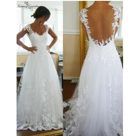 Lace Wedding Dresses A-Line Cap Sleeves Illusion Back Cheap Bride Dress Bridal Gowns Vestido De Noiva