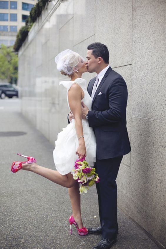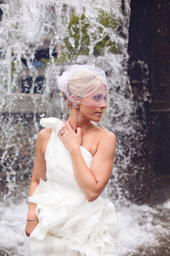 Classic Mini Short Wedding Dress, One Shoulder Short Wedding Dresses, Ruffle organza Bridal Dress