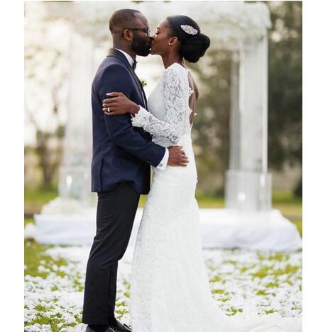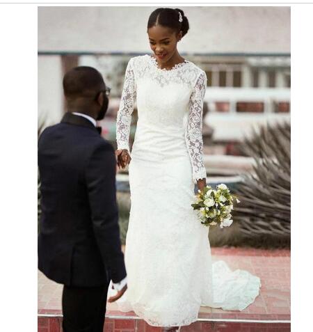 Elegant Lace Mermaid Wedding Dresses Long Sleeves Sexy Backless Jewel Wedding Gowns Sweep Train Bride Dress Custom Made