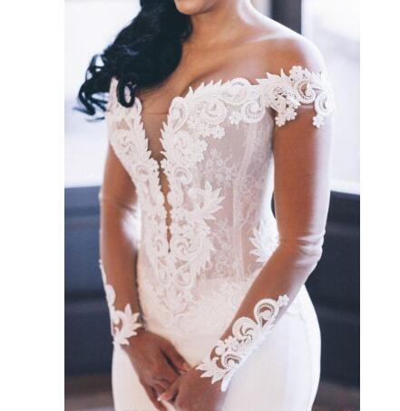 Sexy Mermaid Wedding Dresses Off Shoulder Long Sleeves Lace Appliques Illusion Keyhole Plus Size Formal Bridal Gowns