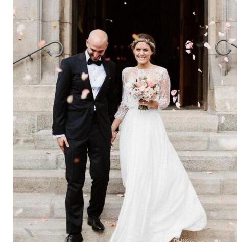 Romantic Country Beach A Line Wedding Dresses 2020 Simple Bohemian Boho Wedding Dress Long Bridal Gowns with Lace Jacket