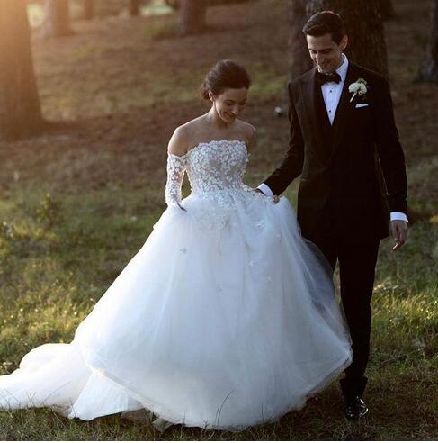 Princess Wedding Dresses With Detachable Long Sleeve Strapless Backless Sweep Train Appliques Country Garden Bridal Gowns vestidos de novia