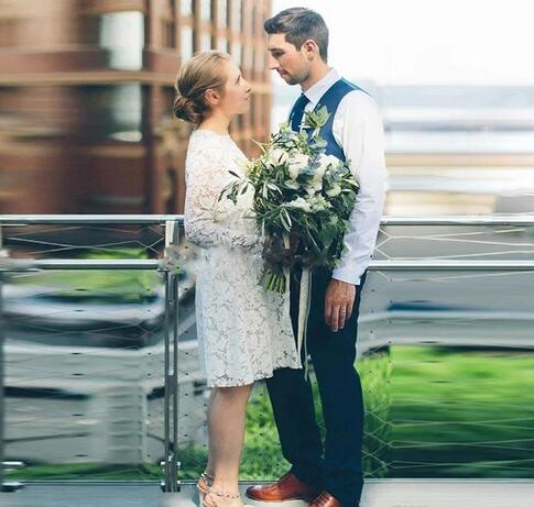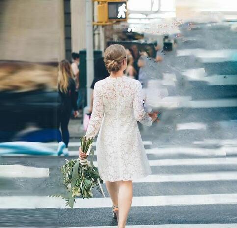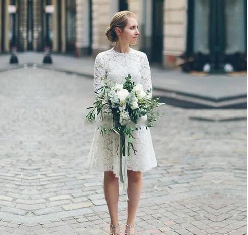 Modern Lace Short Wedding Dresses Summer Beach Boho Garden Bridal Dress Long Sleeve Knee Length Sheath Robes De Mariee Custom
