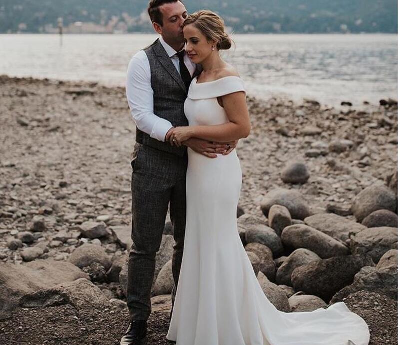 Romantic Off The Shoulder Beach Wedding Dresses Simple Boho Bridal Gown Plus Size Wedding Dress Satin Mermaid Backless