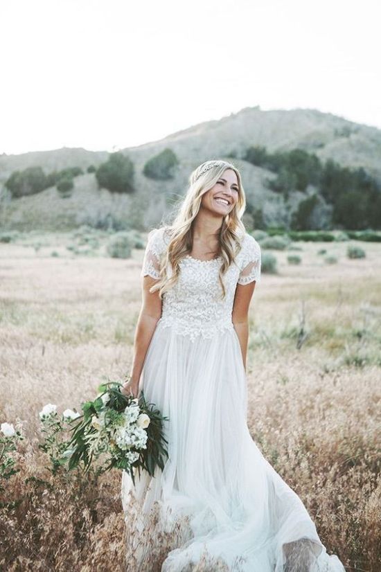 Lace Wedding Dresses Garden Cap Sleeve Bridal Gowns