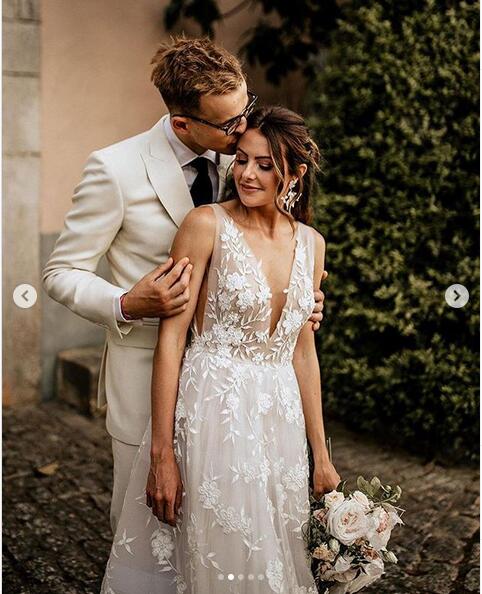 Boho Deep V Neck Wedding Dresses Lace Bridal Gowns