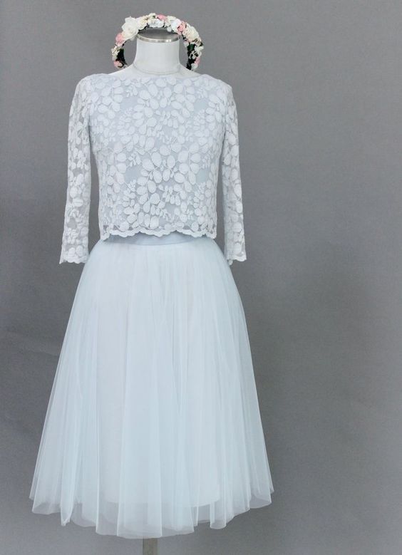 Boho Light Blue Wedding Dresses Garden Long Sleeve Lace Bridal Gowns