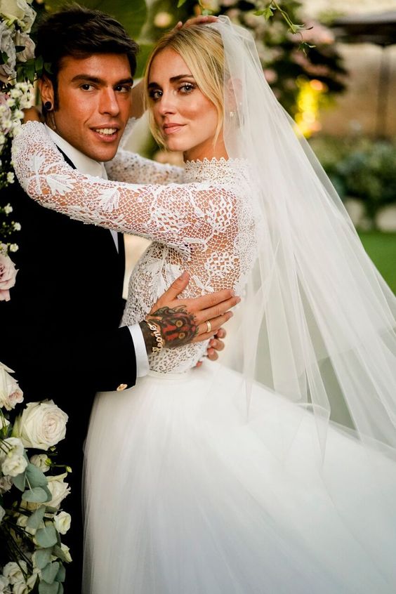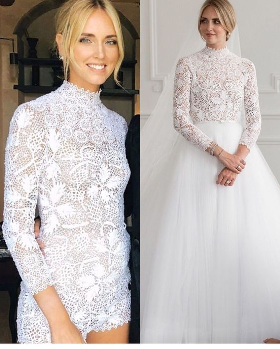 Boho Ball Gown Tulle Wedding Dresses High Neck Lace Bridal Gowns