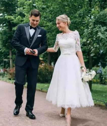 Tea Length Wedding Dress,Lace Wedding Dresses ,Handmade Bridal Gowns,Short Wedding Dress
