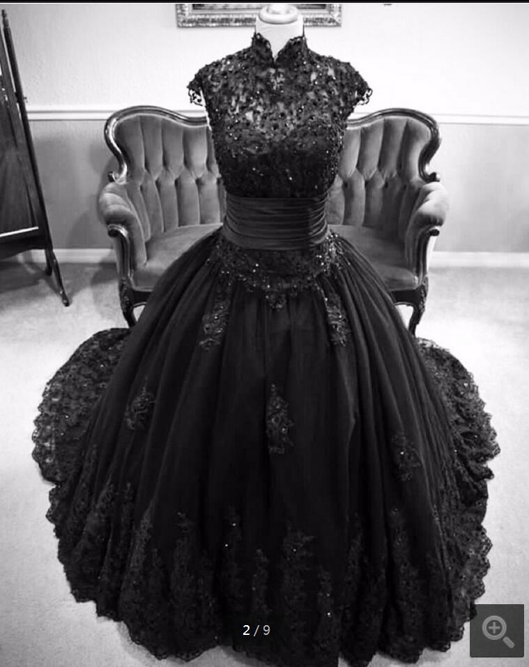 Black Ball Gown Wedding Dresses High Neck Lace Beading Bridal Gowns