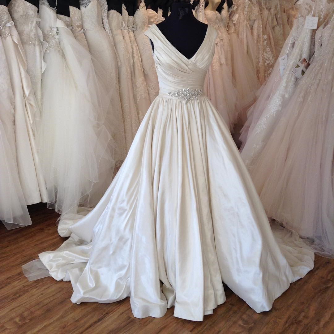 Simple Ball Gown Wedding Dresses V Neck Beading Crystal Bridal Gowns