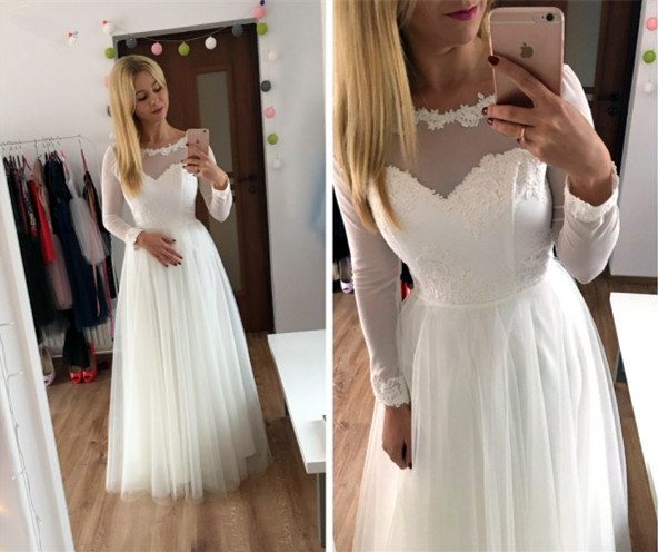 Sheer Neck Long Sleeves Wedding Dress Lace Bridal Gowns