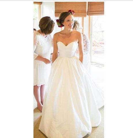 Vintage New Arrival Simple Wedding Dresses A-line Sweetheart Sleeveless Floor Length Satin Custom Made Country Bridal Gowns