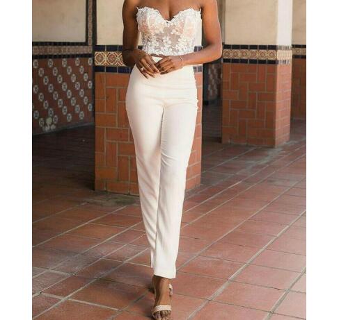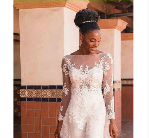 New Style Pant Suit Wedding Dresses with Long Sleeves Wraps Lace Applique Sweetheart Bride Party Wedding Gowns Three-Pieces