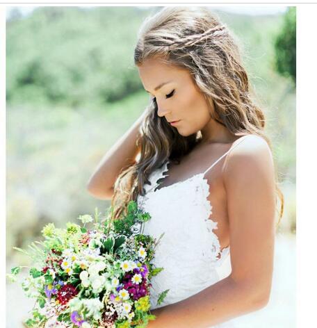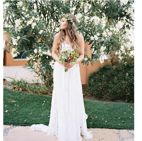 A Line Wedding Dresses Backless Country Wedding Dress Tiered Skirt Appliques Lace Spaghetti Straps Summer Boho Wedding Dress Vestido
