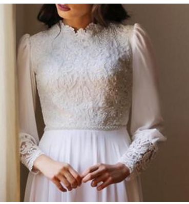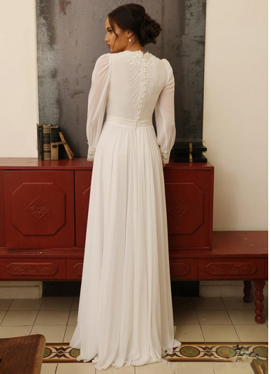 Summer Chiffon A-Line Wedding Dresses Appliqued Lace Poet Long Sleeves Bohemian Wedding Dress Garden Beach Bridal Gowns