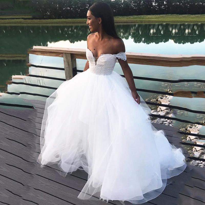 Summer A Line Wedding Dresses 2020 Sexy Back Lace Sweetheart Off Shulder Bride Gowns Long Tulle Vestidos De Novia