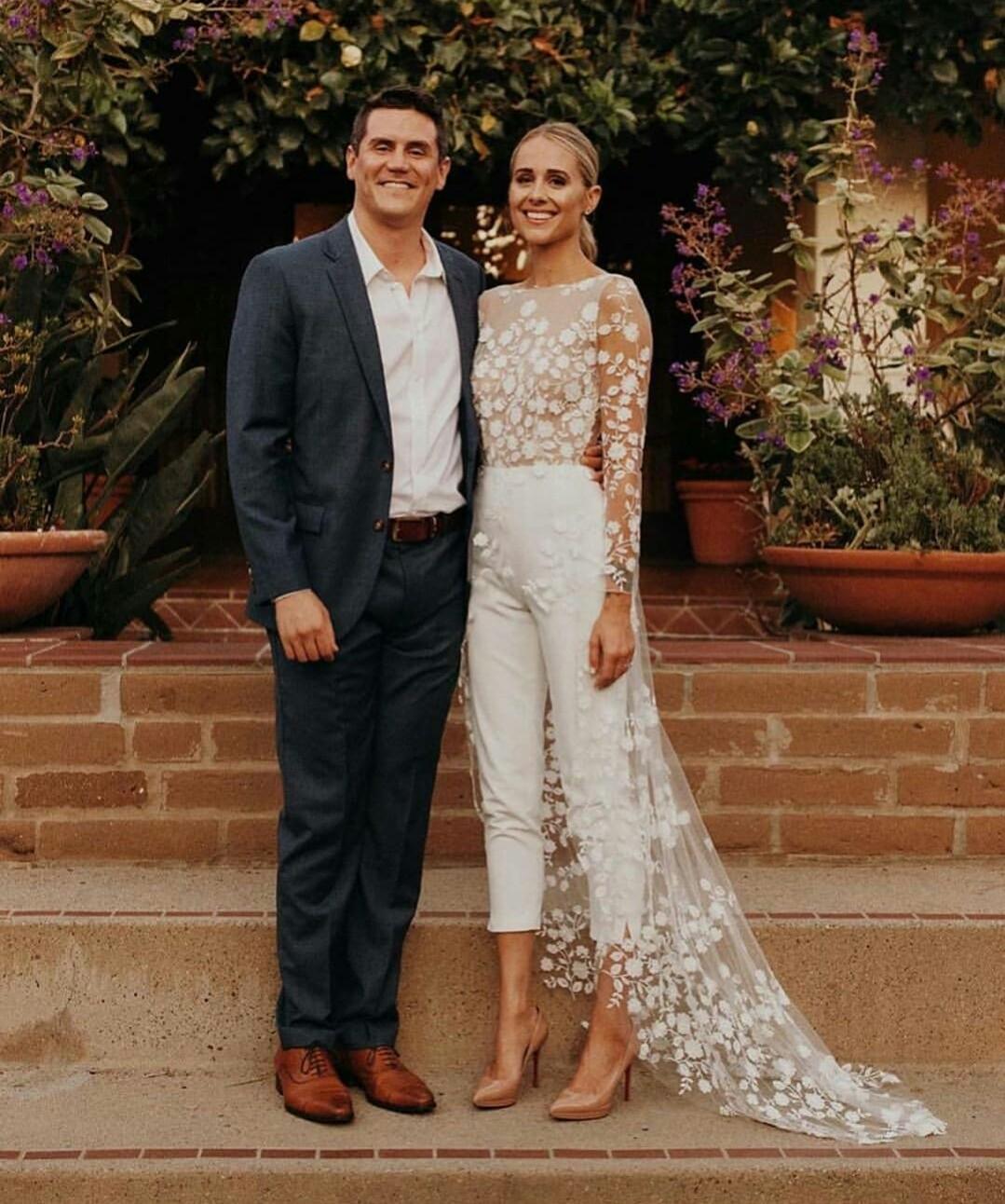 Beach Wedding Bridal Jumpsuits Jewel Neck Lace Appliqued Backless Boho Wedding Dress Custom Made Sweep Train Vestidos De Novia