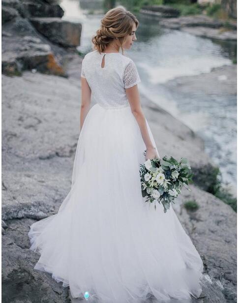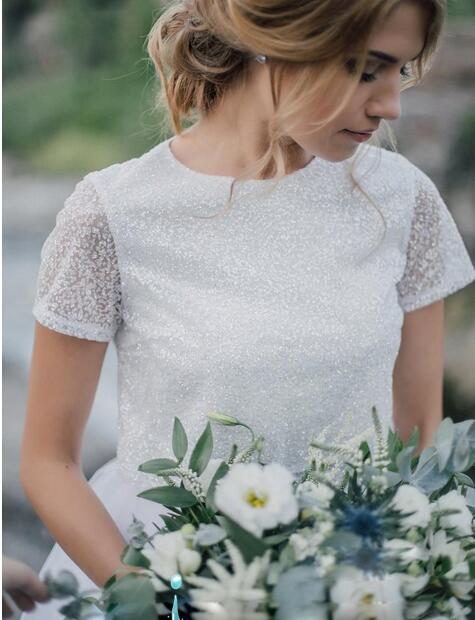 Wedding Dresses A Line Sequins Bridal Gowns Scoop Neck Wedding Gowns Country Style Short Sleeveless 2 pcs Skirt