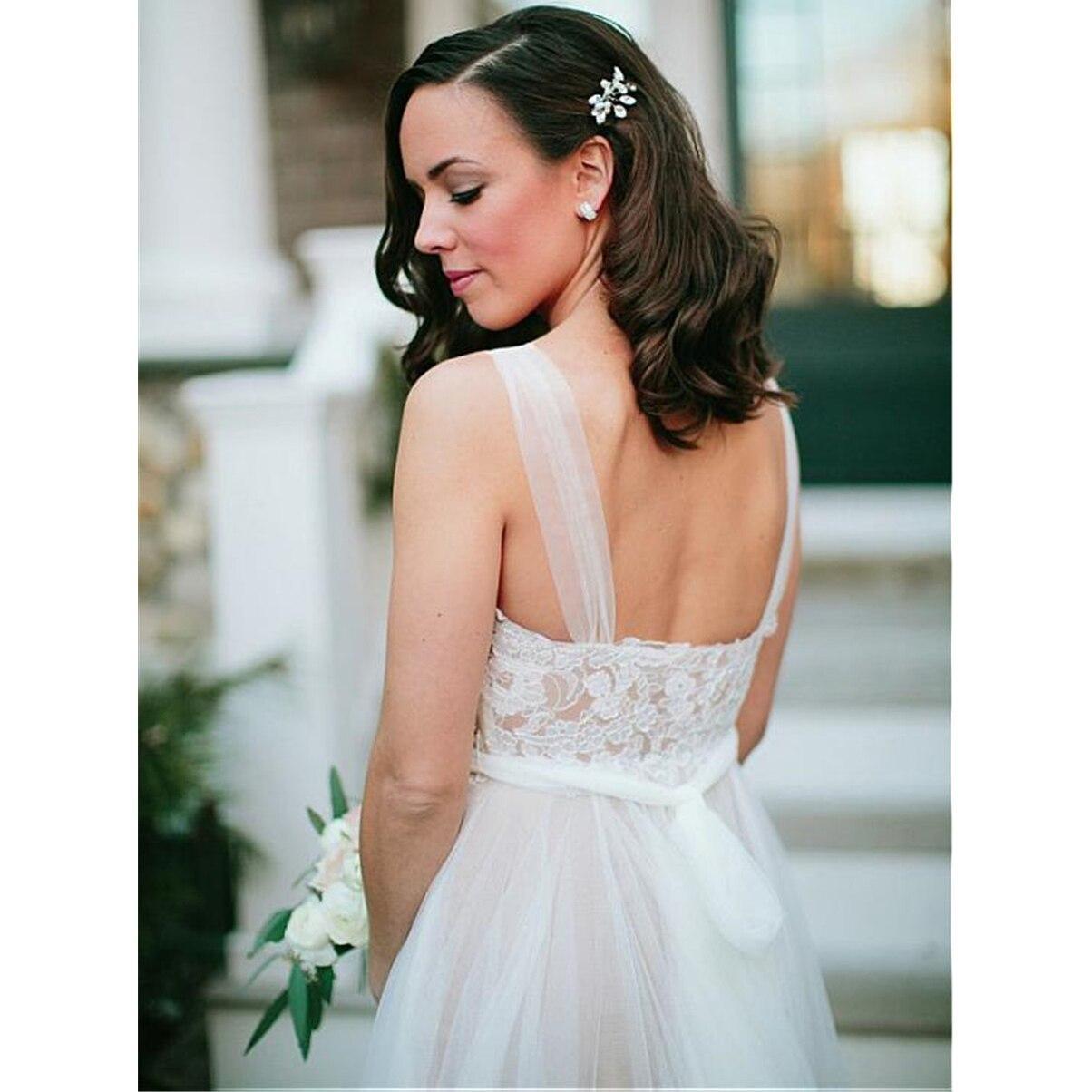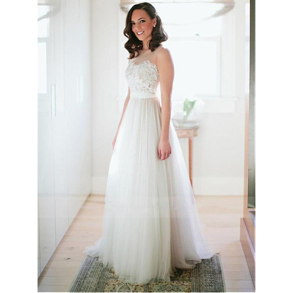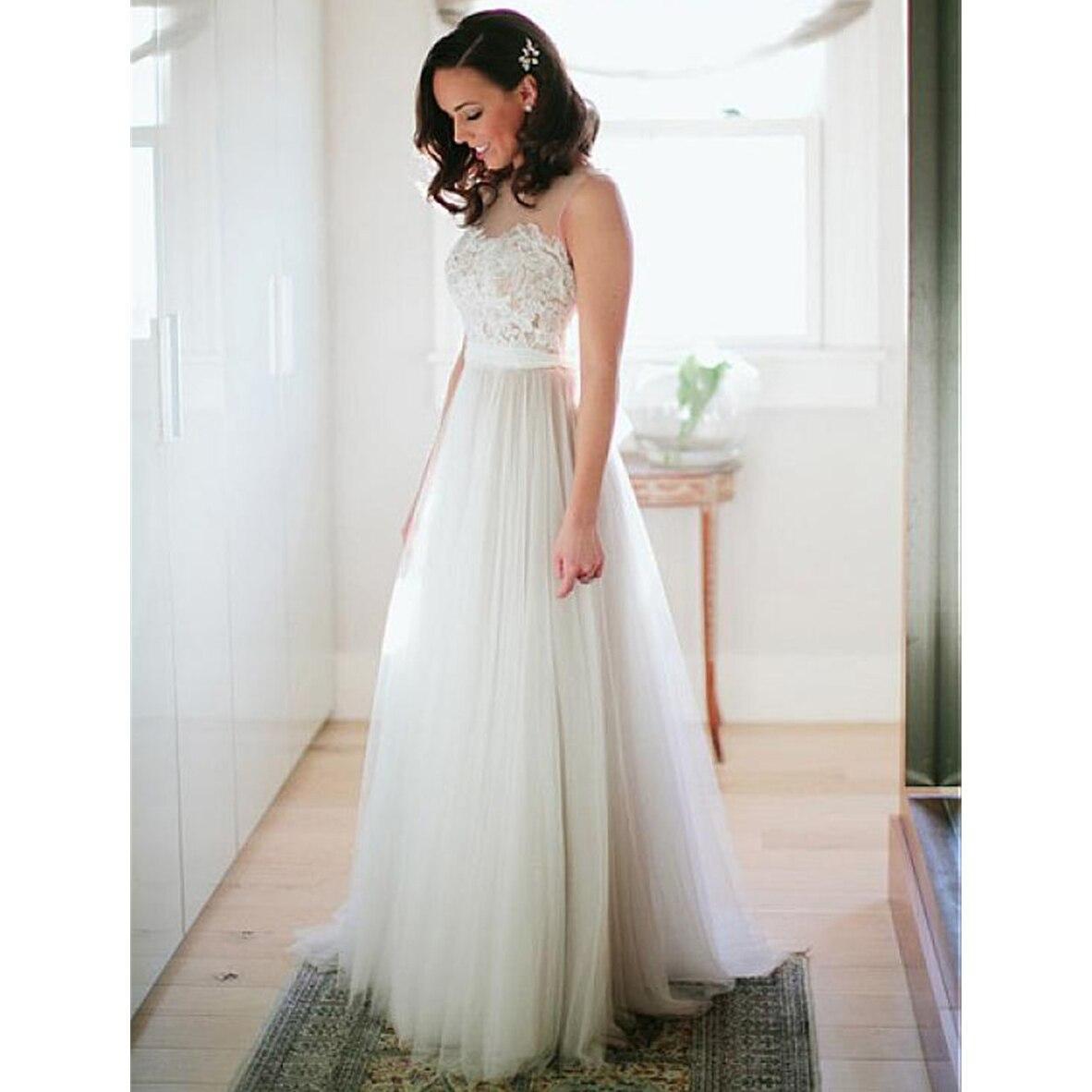 Simple Design Elegant Lace Top Soft Tulle Floor Length Straps Bridal Gowns Vestidos De Noiva Sexy Sheer Neck Wedding Dresses