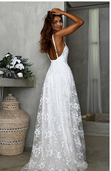 White Lace Wedding Dresses Sexy High Split Low Backless Spaghetti Straps Summer Beach Wedding Bridal Gowns Custom Plus Size