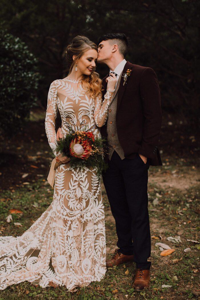 Bohemian Wedding Dress, Mermaid Wedding Dress, Lace Wedding Gown