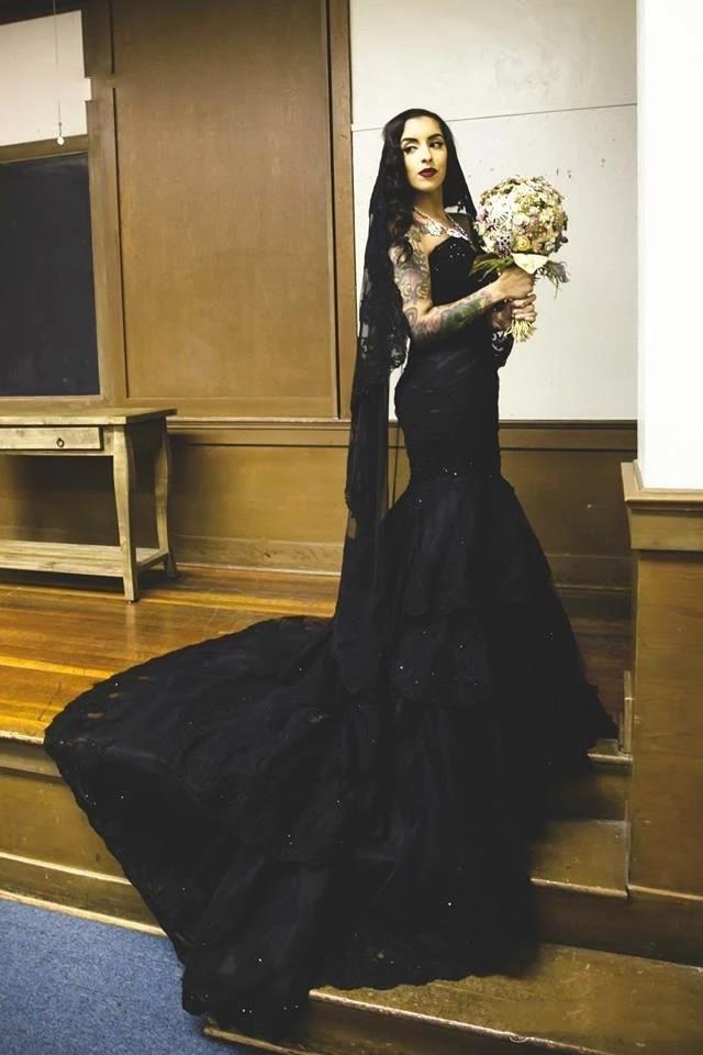Gothic Design Black Mermaid Wedding Dress Sexy Sweetheart Corset Back Vintage Castle Bridal Gowns Court Train Lace Appliqued Vestido De Novia