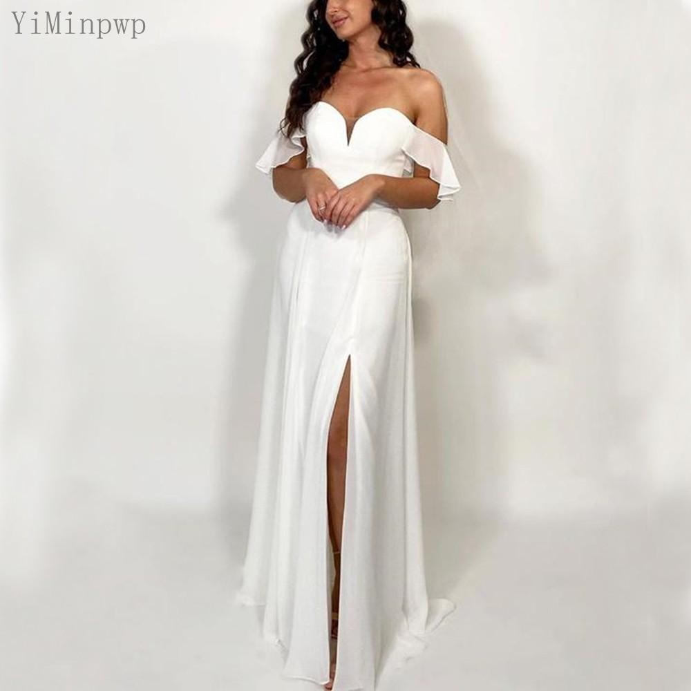 Beach Wedding Dresses 2021 Off Shoulder Side Split Floor Length A Line Chiffon Bridal Gowns robes de mariee