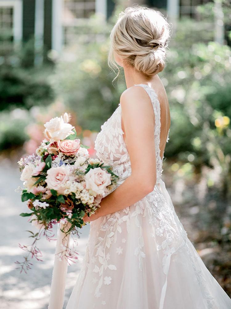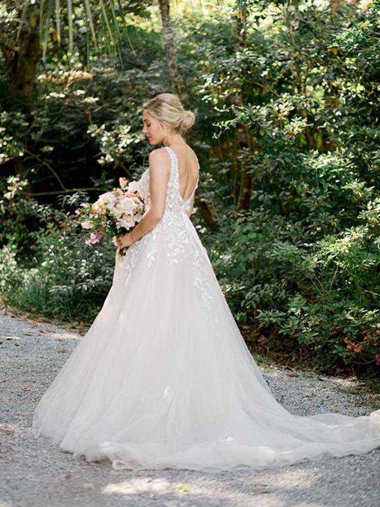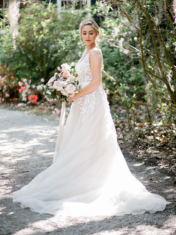Sexy Lace Deep V Neck Backless Beach Wedding Dress Sweep Train Tulle Sleeveless Boho Bridal Dresses
