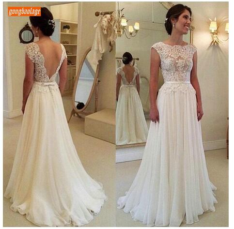 Elegant Boho Chiffon White Wedding Dress Long Lace Appliqued Sleeveless Ivory Wedding Gowns Cheap Garden Sexy Bride Dresses