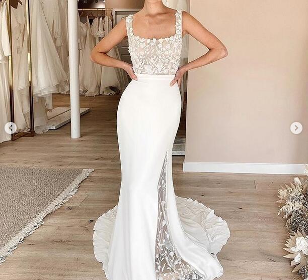 Simple Mermaid Wedding Dresses Lace Bridal Gowns
